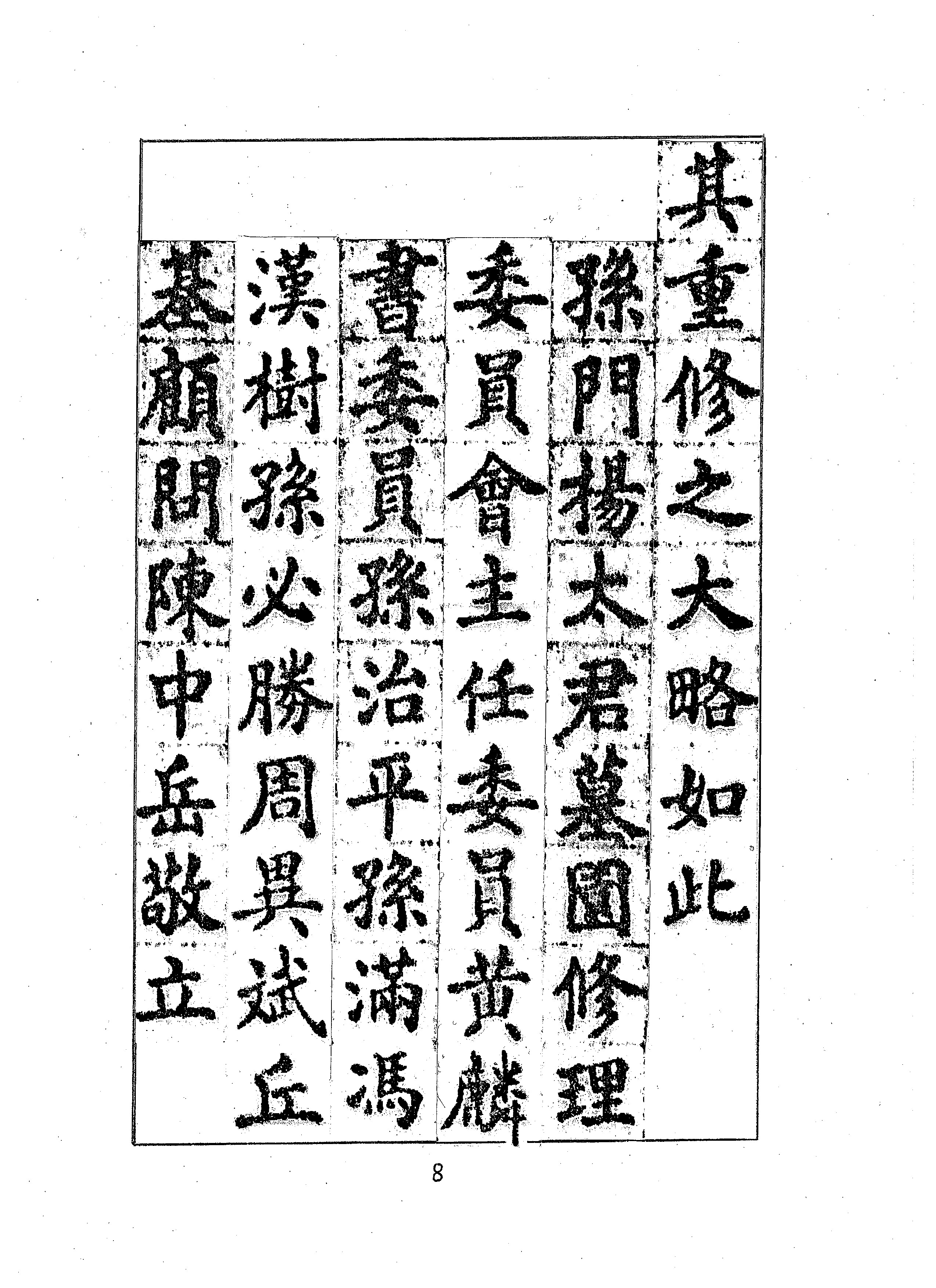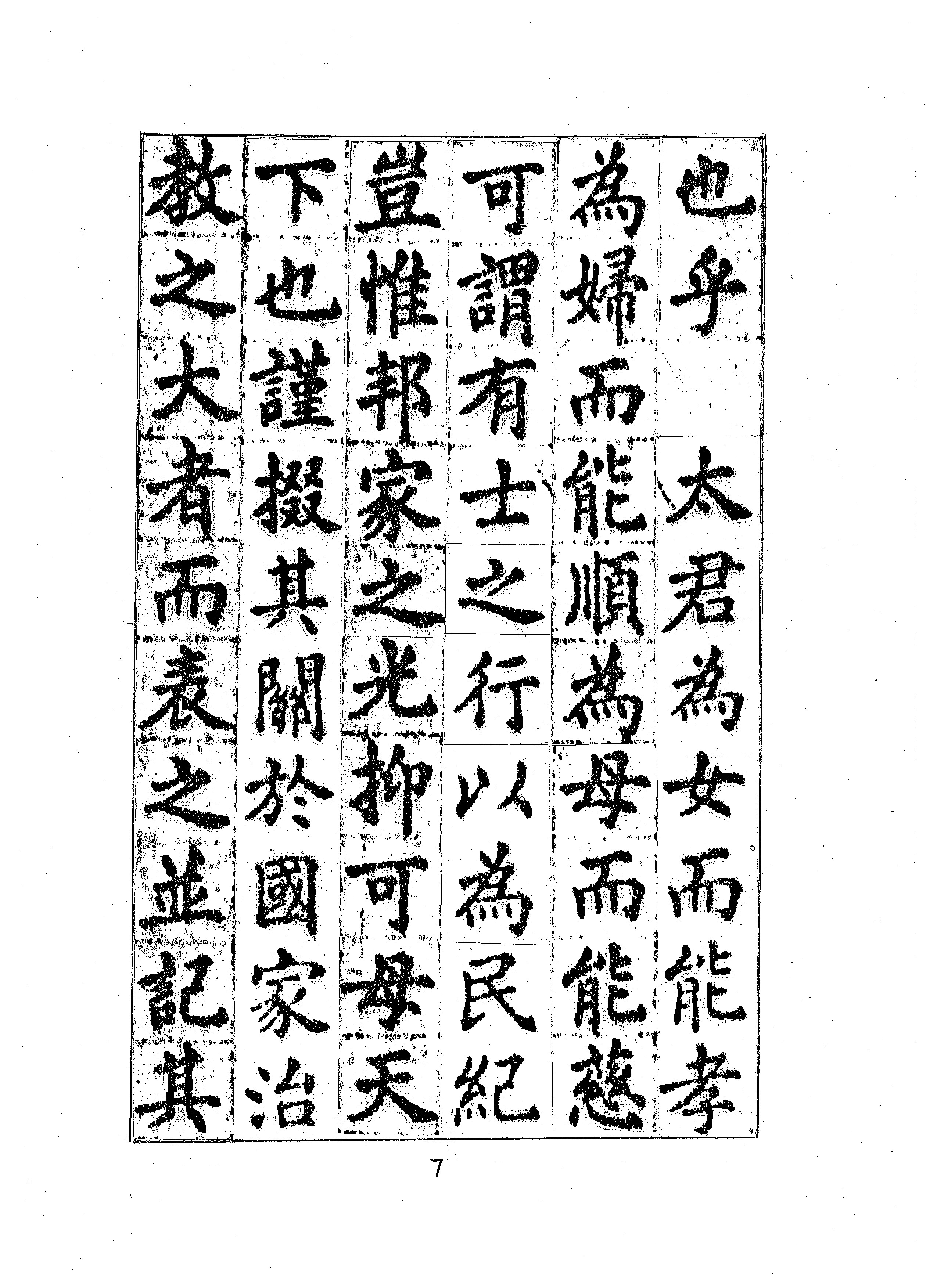 太君為女而能孝,為婦而能順,為母而能慈,可謂有士之行以為民紀,豈惟邦家之光,抑可母天下也。謹掇其關於國家治教之大者而表之,並記其重修之大略,如此。