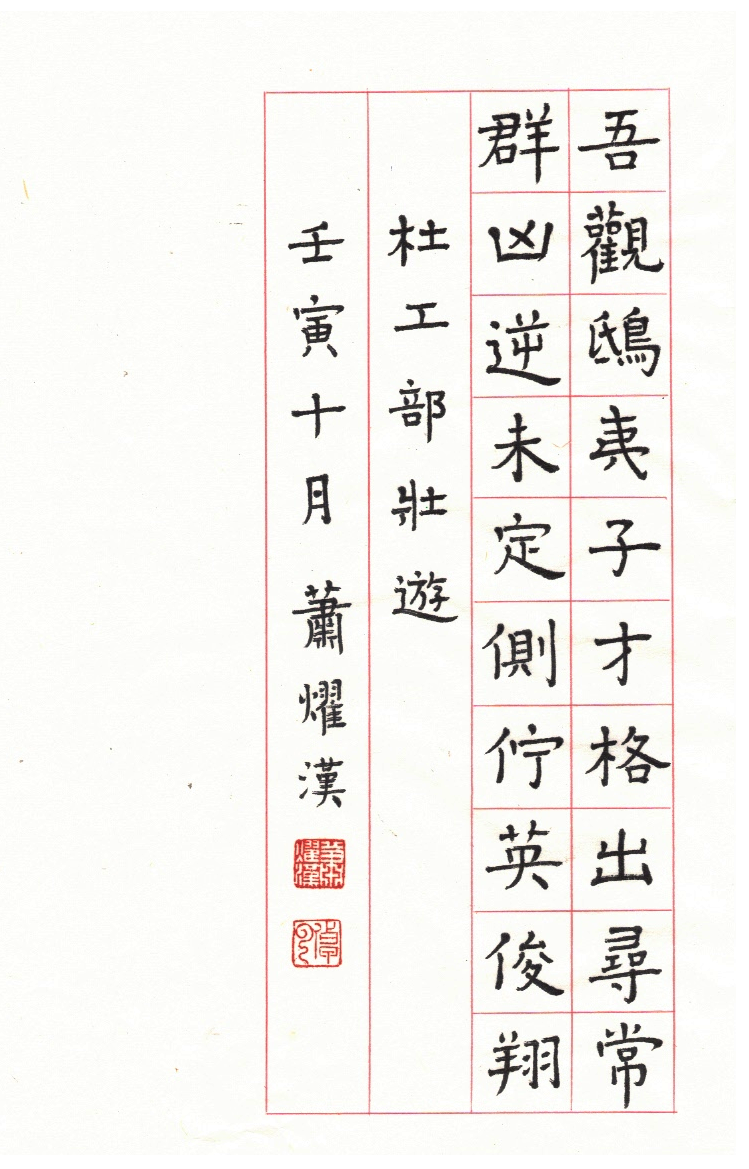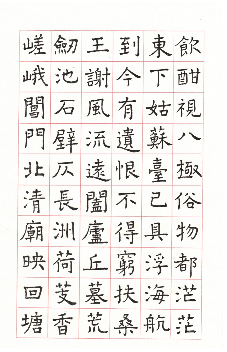 用網上 Apps ‘雲章書法字典’ Yunzhang calligraphy dictionary 集合了適當的字體,作為範本,寫杜工部的詩集, 確實是賞心樂事。