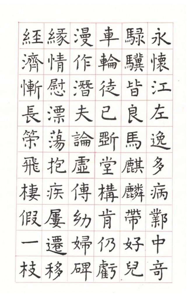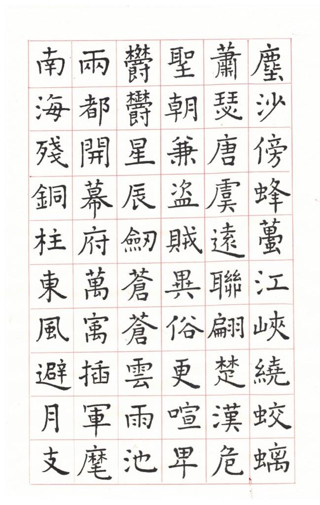 用網上 Apps ‘雲章書法字典’ Yunzhang calligraphy dictionary 集合了適當的字體,作為範本。雖然每一個字都結構精美,但字體不是出於一人的手筆,風格不同,加上大小不一,筆劃粗幼各異,所以要加整理,希望臨寫到風格統一。用唐楷寫杜工部的詩集, 確實是賞心樂事。