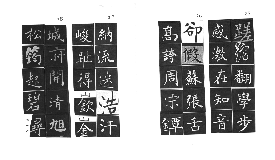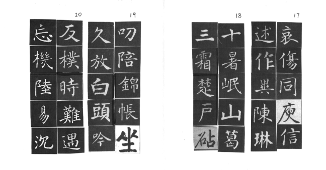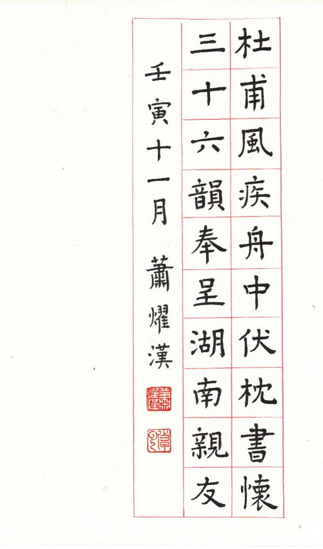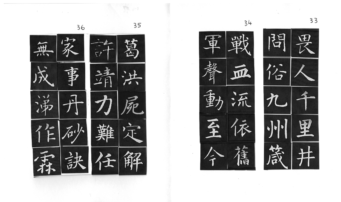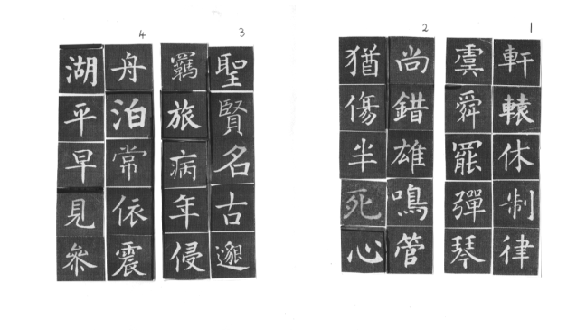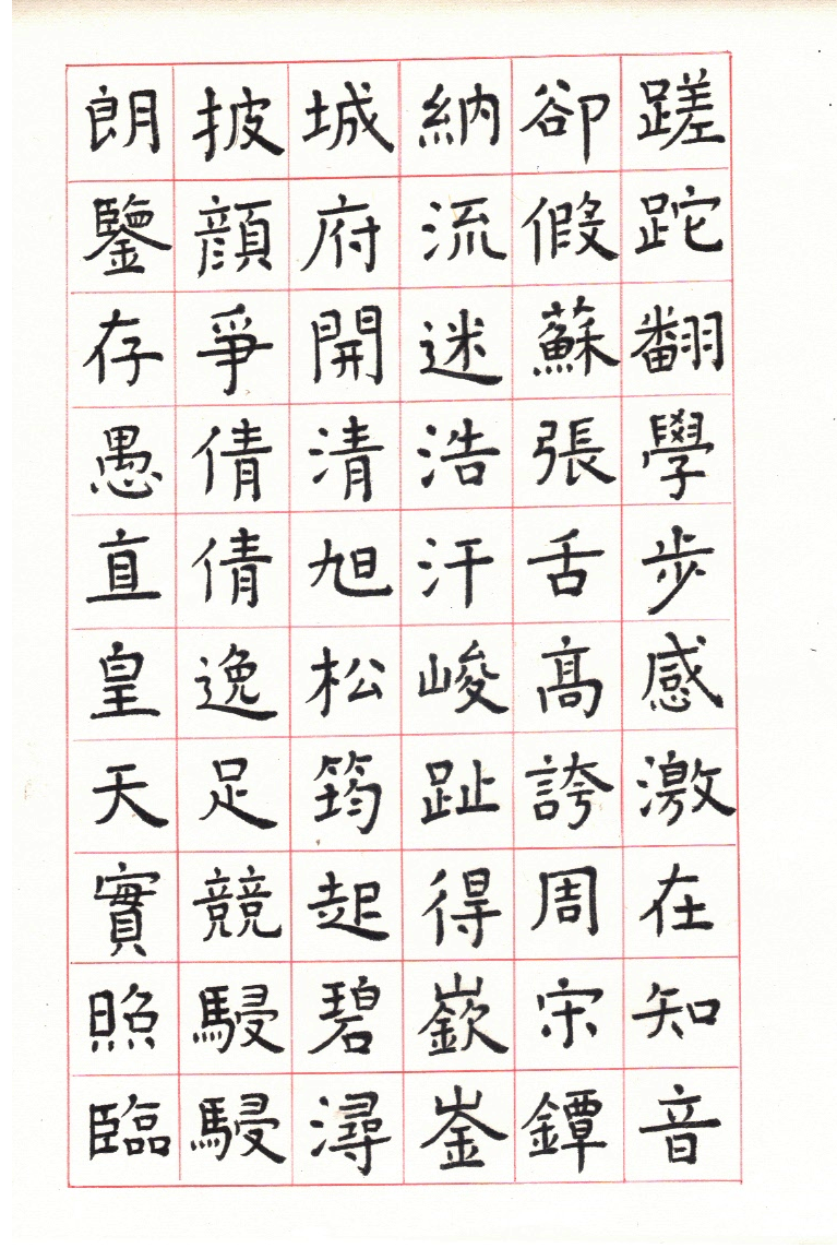 用網上 Apps ‘雲章書法字典’ Yunzhang calligraphy dictionary 集合了適當的字體,作為範本。雖然每一個字都結構精美,但字體不是出於一人的手筆,風格不同,加上大小不一,筆劃粗幼各異,所以要加整理,希望臨寫到風格統一。用唐楷寫杜工部的詩集, 確實是賞心樂事。