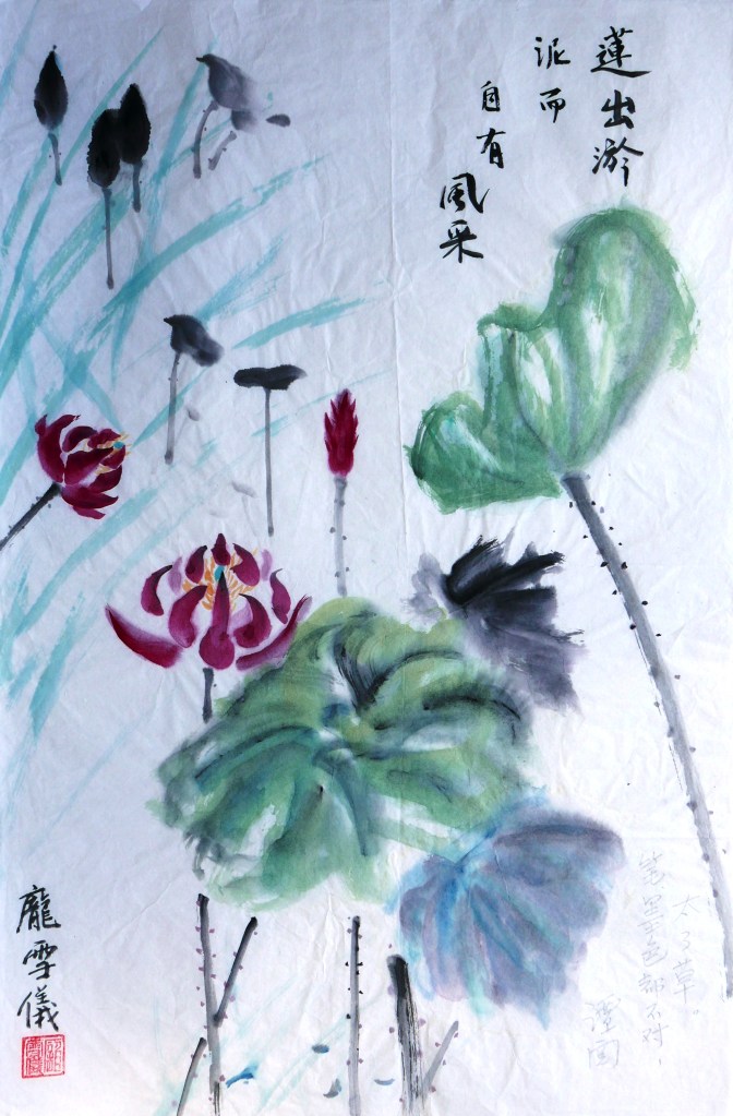 Lotus 紅蓮, ink and colour on paper, 66 x 45 cm