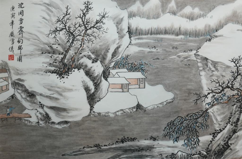 Snow Scene 雪景圖, after Shen Zhou 沈周 (1427-1509), dated dated 2010 庚寅, ink and colour in paper, 37 x 69 cm