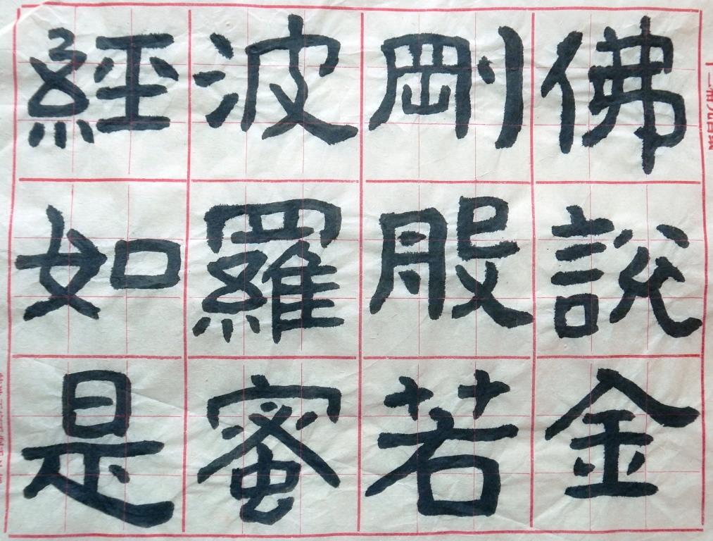 Tai Shan Jin Gang Jing (Taishan Diamond Sutra) 泰山金剛經 (550-577 CE), transitional script between clerical script and regular script 隸書/楷書之間, only the first page is shown