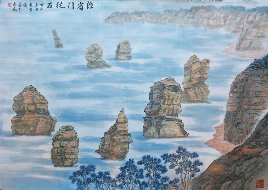 Twelve Apostles, Victoria, Australia 維省門徒石, dated 2014 甲午, ink and colour on paper, 69 x 99 cm