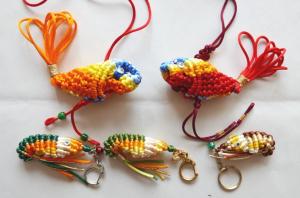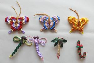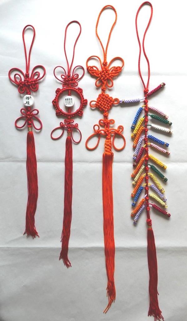 Angela was also interested in Chinese traditional decorative knotting 中國結. It is a decorative handcraft art that has a long history of more than one thousand years. A Chinese knot is tied and woven from a single length of cord into designs of varying complexity. Chinese knot tassel decorations for the Chinese New Year are popular.