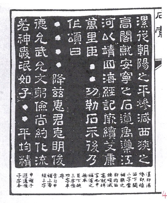 The ‘Ode to Shimen’石門頌, ‘Ode to Xi Xia’西狹頌 and ‘Ode to Fu Ge’郙閣頌 are known as the ‘Three Odes’ of Han Dynasty calligraphy. Both Ode to Xi Xia and ‘Ode to Fu Ge’ praised the administration and construction of roads and bridge of Prefect Li Xi. The original stone inscriptions of Fu Ge Song has been badly eroded and many characters were lost. The characters are quaint (古樸) and the style is plain (簡樸) and unrefined (粗糙). At the first glance, people may not like the style, but over time, people would appreciate its uniqueness and aesthetic values.