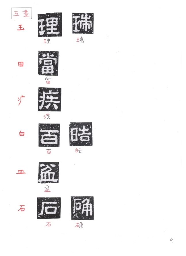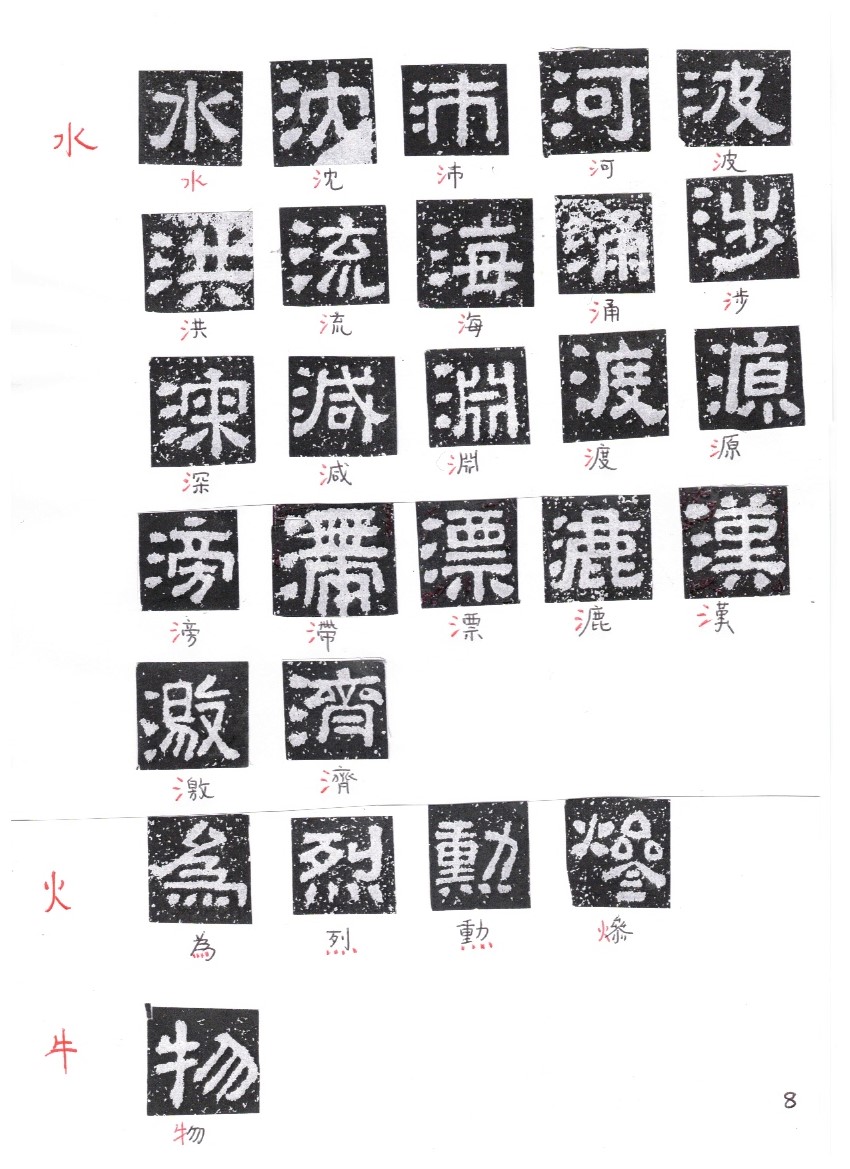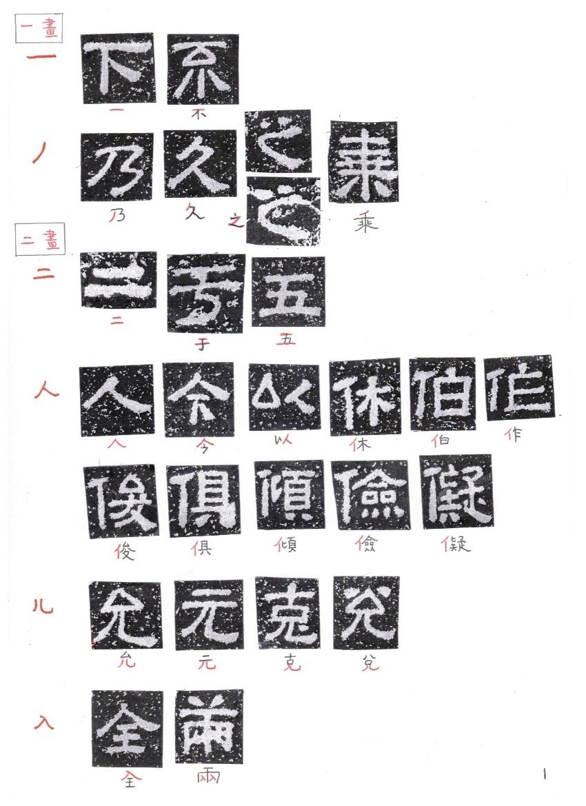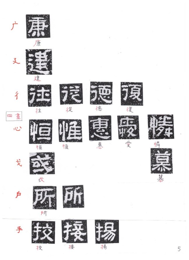 The following is a glossary of the characters according to their radicals (部首)