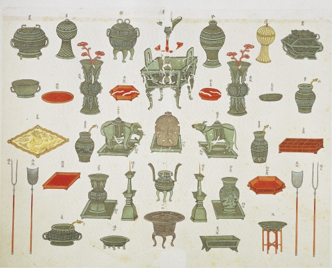 Some of the ritual vessels mentioned in the stele for holding wine, water, grains, meat and cakes and other food are as follows.