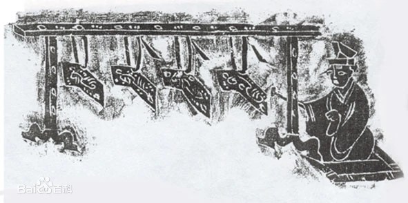 The musical instruments mentioned in the stele are bells (鍾), chimes (磬), zithers (瑟) and drums (鼓).