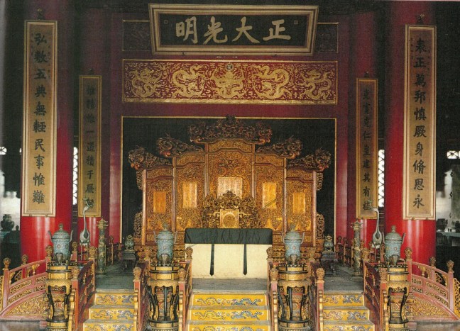 The Dragon Throne (龍椅) was the throne of the Chinese Emperor, as the dragon was the emblem of divine imperial power.