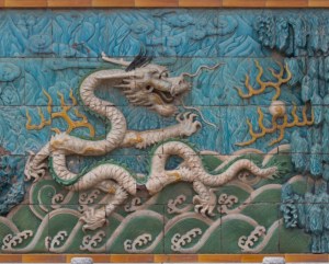 A Nine-Dragon Wall (九龍壁) or Nine-Dragon Screen is a type of screen wall with reliefs of nine different Chinese dragons. Such walls are typically found in imperial Chinese palaces and gardens.
