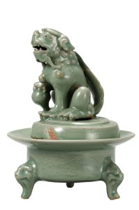 Suanni (狻猊) is a lion-like creature, which may be seen on incense burners. It loves to sit calmly in a meditative pose, with his legs tucked under him, and enjoy the fragrance of incense.
