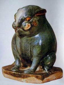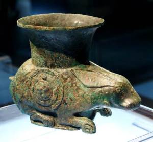 Tang Dynasty, c 600 CE, Rabbit earthenware (one of the Twelve zodiac animals), height 33 cm