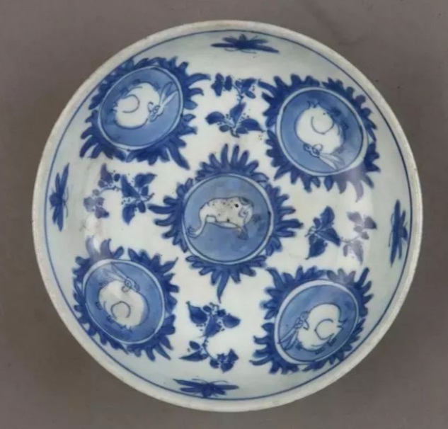 Qing (1636-1911) Kangxi Chenghua (blue and white) porcelain bowl with rabbit patterns (清 康熙青花兔紋淺碗), top diameter 13 cm, base diameter 6 cm, height 4.8 cm