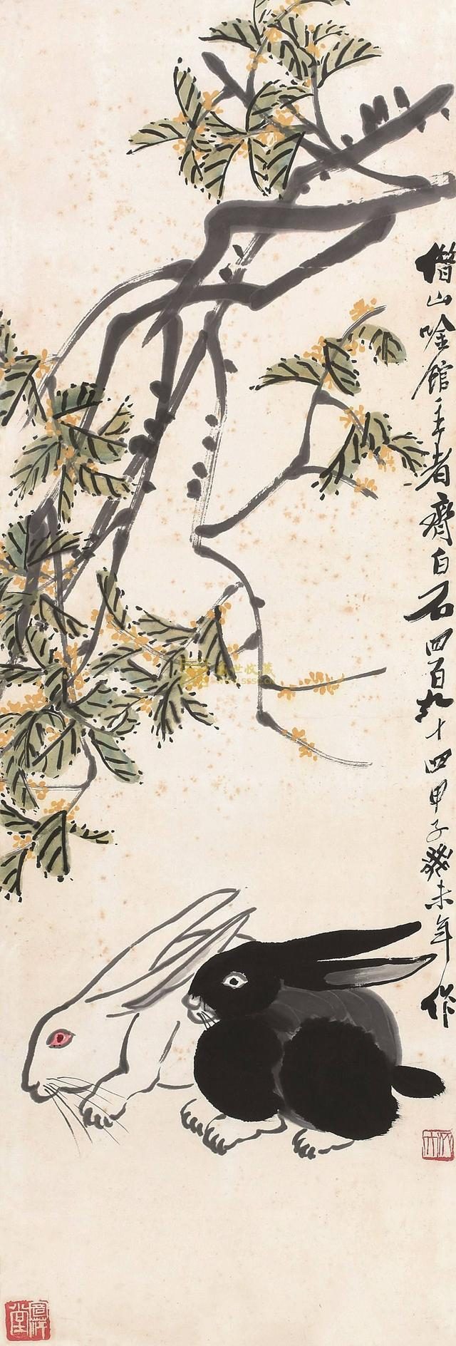 Attributed to Qi Baishi (齊白石) (1864 – 1957), Two rabbits, ink and watercolour on paper