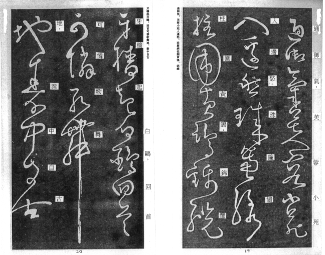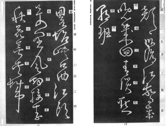 Ink rubbing with the corresponding regular scripts side by side of the cursive scripts