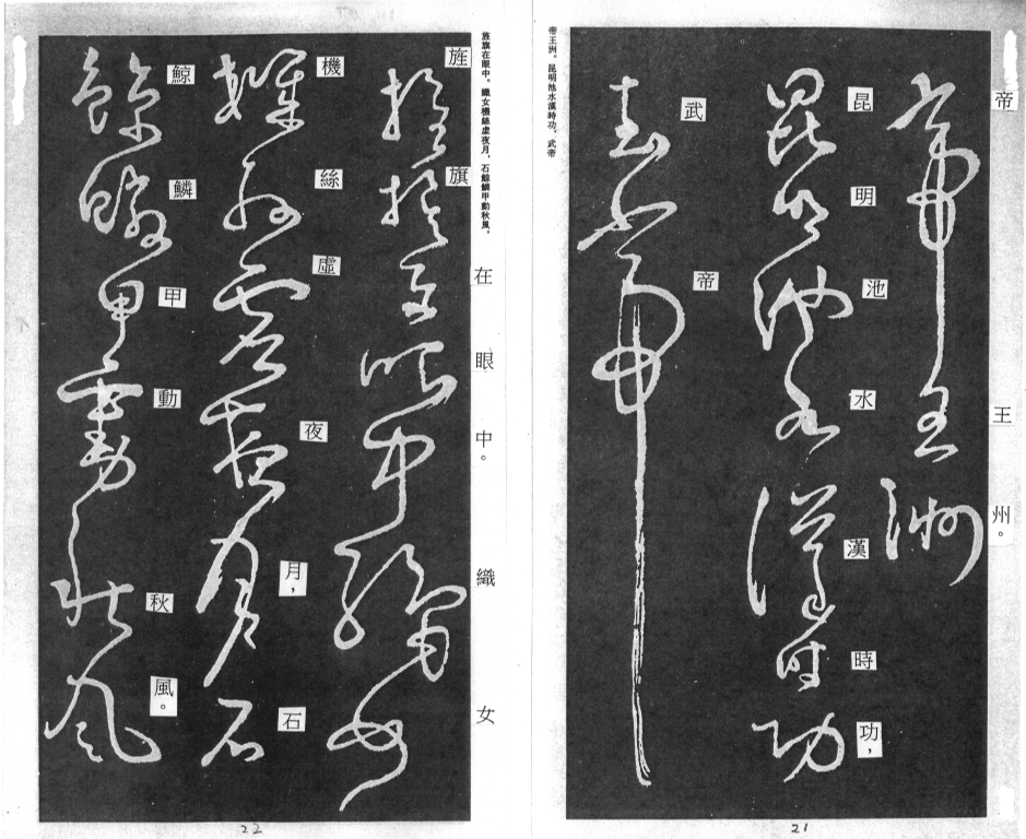 The images of ink rubbings have been photographical modified, with black and white reversed so that the characters are black on a white background.