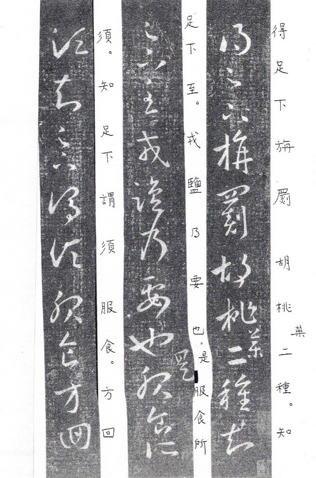得足下栴罽、胡桃,藥二種、知足下至。戎鹽乃要也,是服食所須,知足下謂須服食。方回近之,未許吾此志。知我者希,此有成言。無緣見卿,以當一笑。