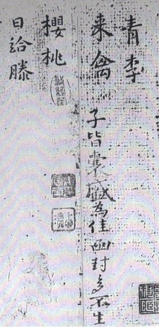 青李、來禽、櫻桃、日給滕(藤)子,皆囊盛為佳,函封多不生。