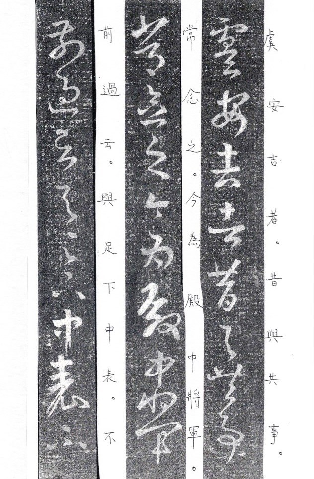 虞安吉者,昔與共事,常念之。今為殿中將軍。前過云,與足下中表。不以年老,甚欲與足下為下寮。意其資可得小郡,足下可思致之耶?所念,故遠及。