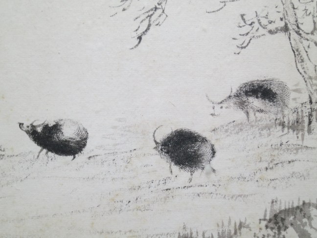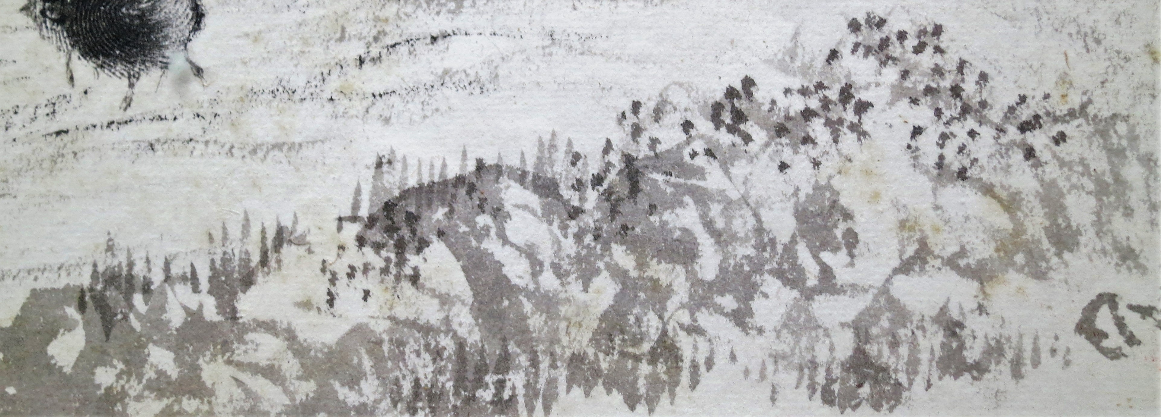 The painting created by finger painting can be highly spontaneous and unpretentious. The following works by Puru (溥儒) [also known as Pu Xinyu 溥心畬] and Chiu Soong-ngar (趙崇雅) are good examples of finger painting.