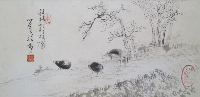Puru 溥儒 (1896 – 1963), also known as Pu Xinyu 溥心畬, was a traditional Chinese painter and calligrapher and a member of the Manchu Aisin Gioro (愛新覺羅) clan, the ruling house of the Qing Dynasty (清朝). He was a cousin to Puyi (溥儀), the last Emperor of China. Puru was reputed to be as talented as the famous southern artist Zhang Daqian. Together, they became known as “P’u of the North and Chang of the South.”