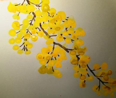 Finger painting is very suitable for drawing wattle flowers. Dip the fingers in yellow paint and press the fingers onto drawing paper to create clusters of yellow dots.