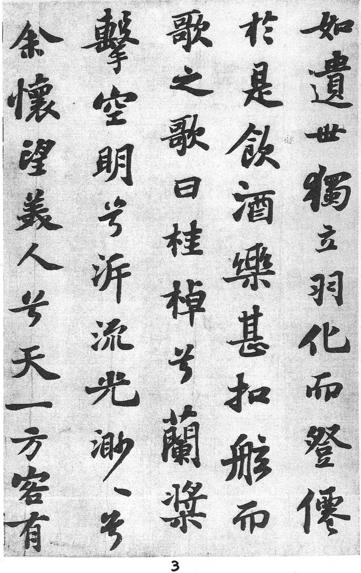於是飲酒樂甚,扣舷而歌之。歌曰:「桂棹兮蘭槳,撃空明兮泝流光。渺渺兮予懷,望美人兮天一方。」