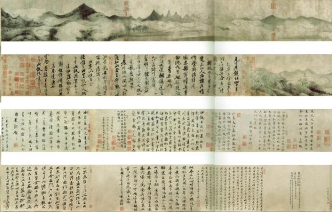 Great artists like Jing Hao (荊浩)(c. 855-915), Guan Tong (關仝)(c. 906 – 960), Li Cheng ( 李成)( 919 – 967), Dong Yuan (董源)(c. 934 – c. 962), Ju Ran ( 巨然) (dates unknown), Fan Kuan ( 范寬)(c. 960 – c. 1030), Guo Xi (郭熙)(1000 – c. 1087), Mi Fu (米芾) (1051–1107) and Mi Youren (米友仁) (1074-1153) were nine of the great masters of landscape painting in Five Dynasties (五代)(907–960), Ten Kingdoms (十國) (c. 907–979) and Northern Song (北宋)(960–1127) periods. They all executed vertical panoramas in an artistic and poetic way. Some artists eg Dong Yuan and Mi Youren also executed (horizontal) long scrolls. Their influence is tremendous. Their paintings are regarded as the ‘Orthodox (正統)’ landscape paintings. People follow this style generations after generations even to the present day.