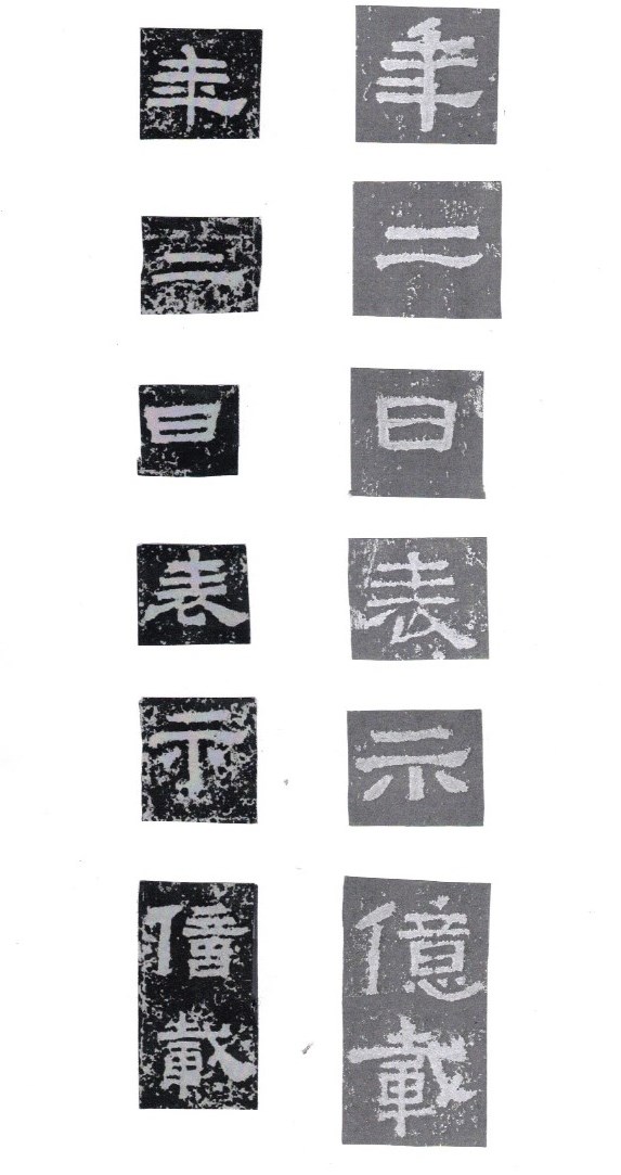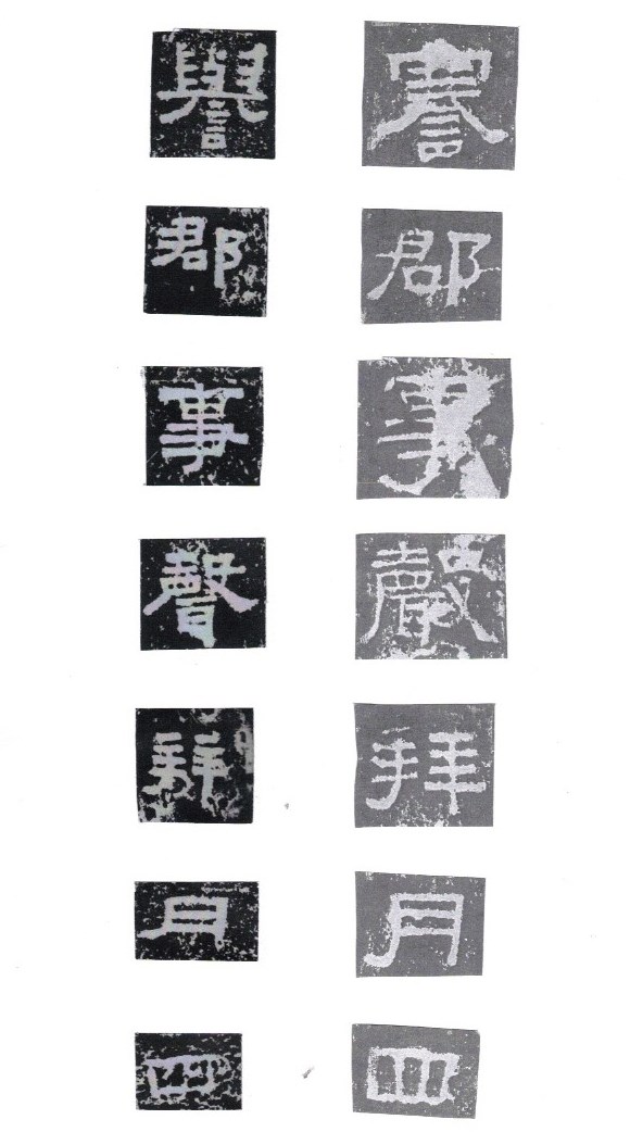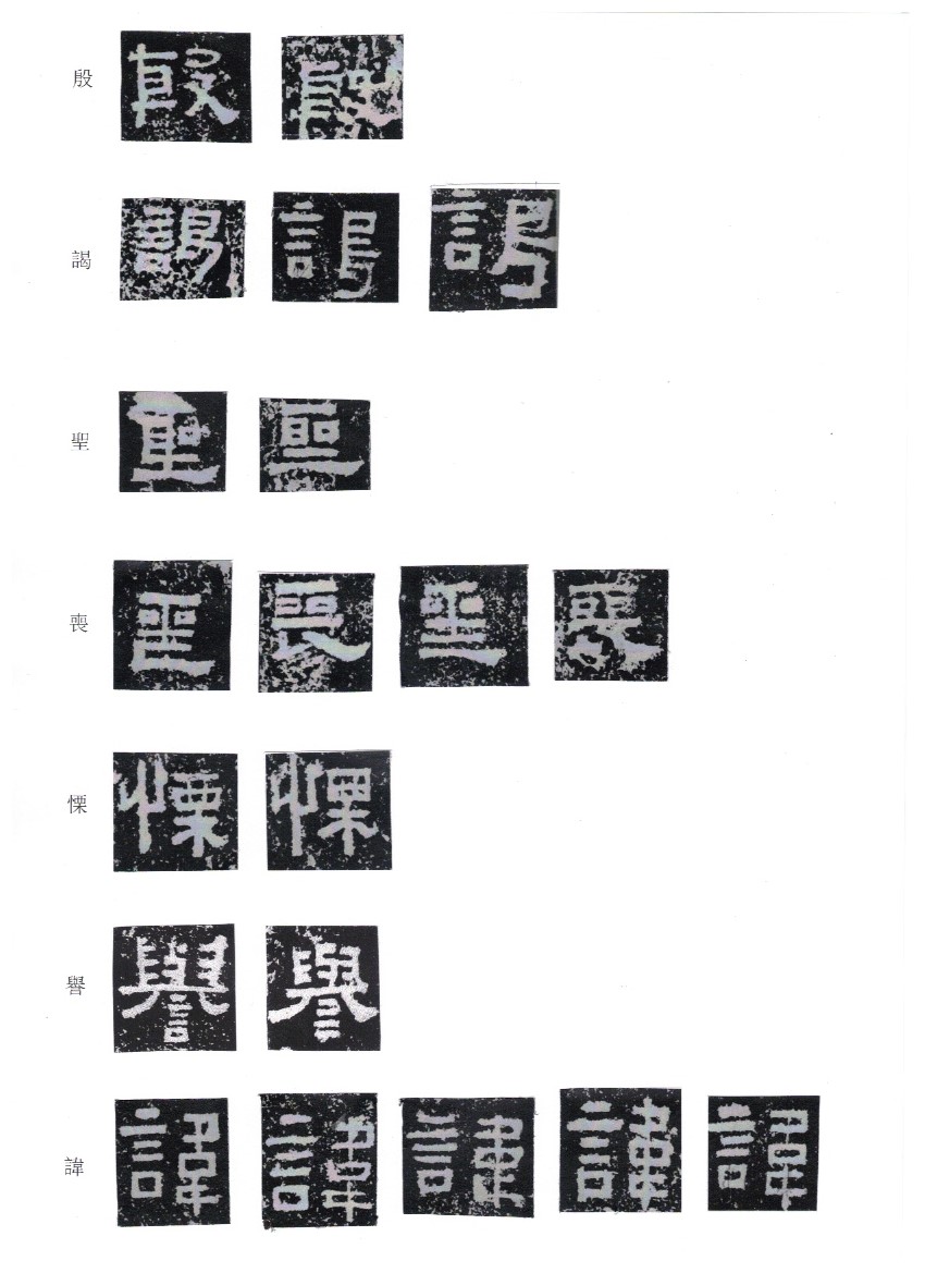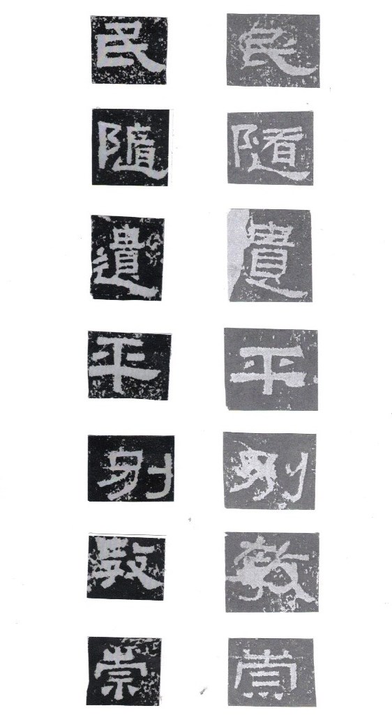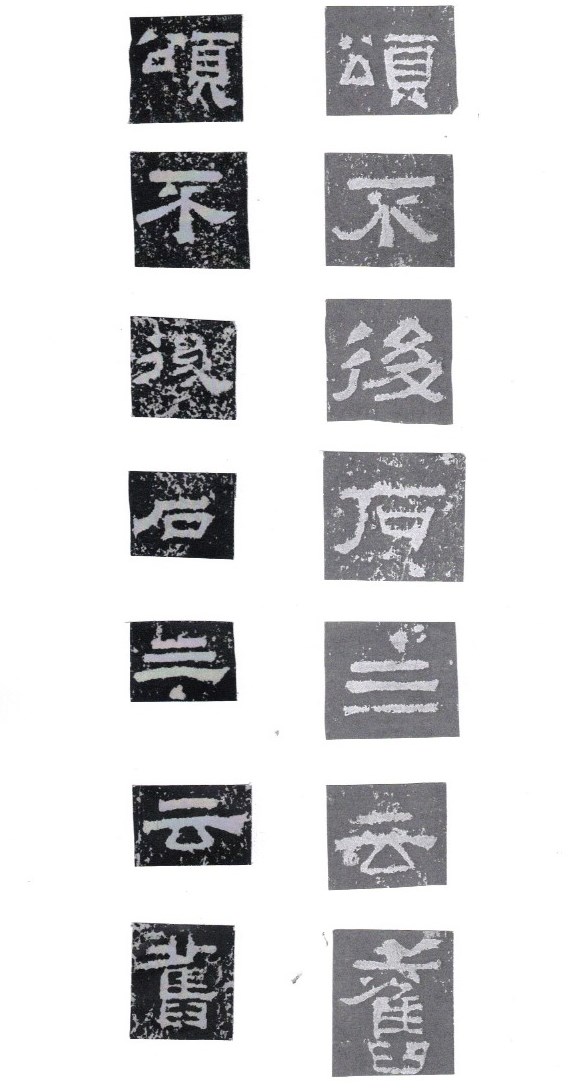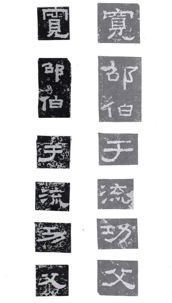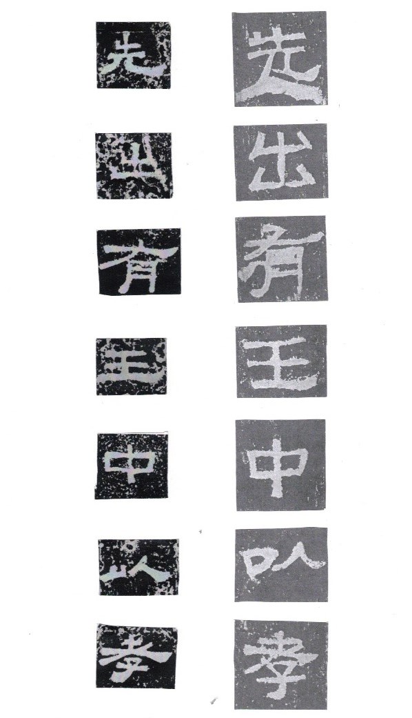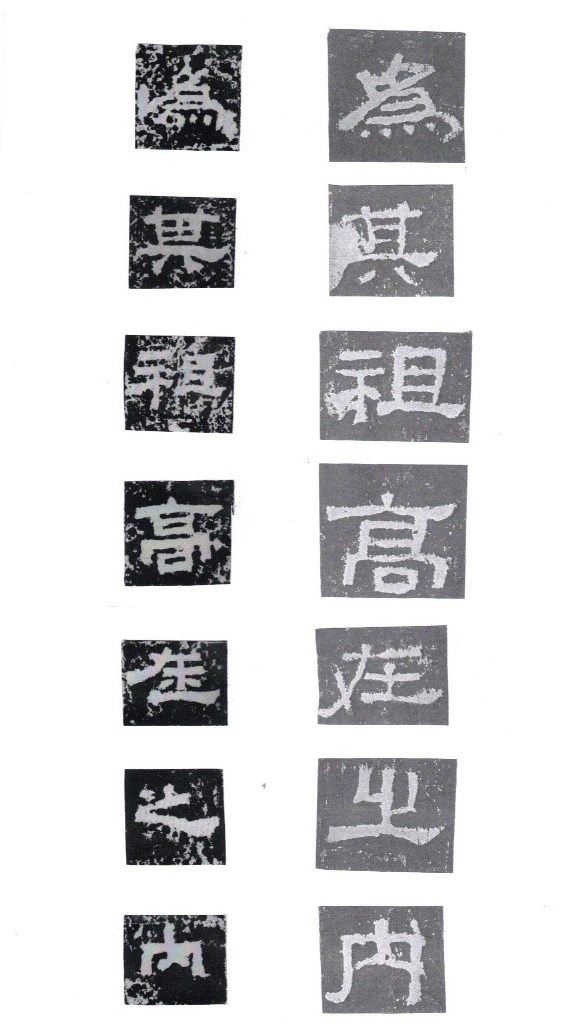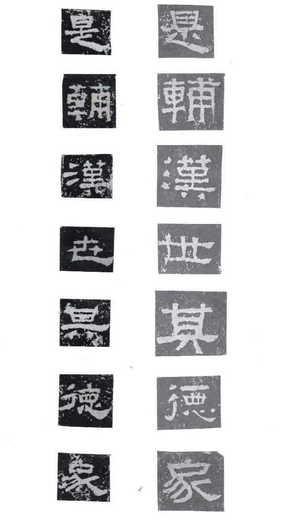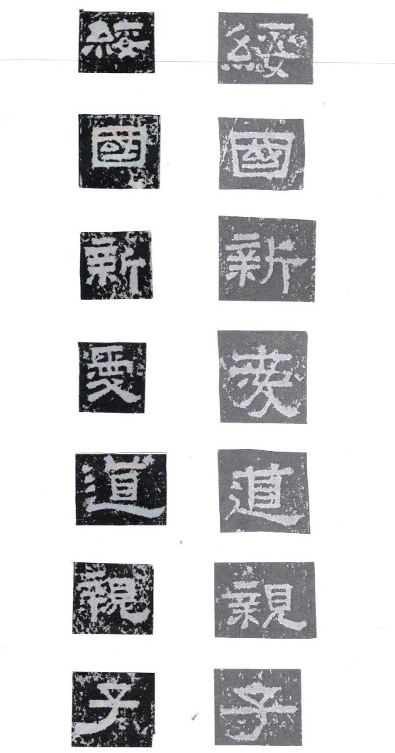 Some of the characters appear in the stele more than once. The following characters are good examples of those characters. Out of the variations of each character, the first one seems to be more typical.