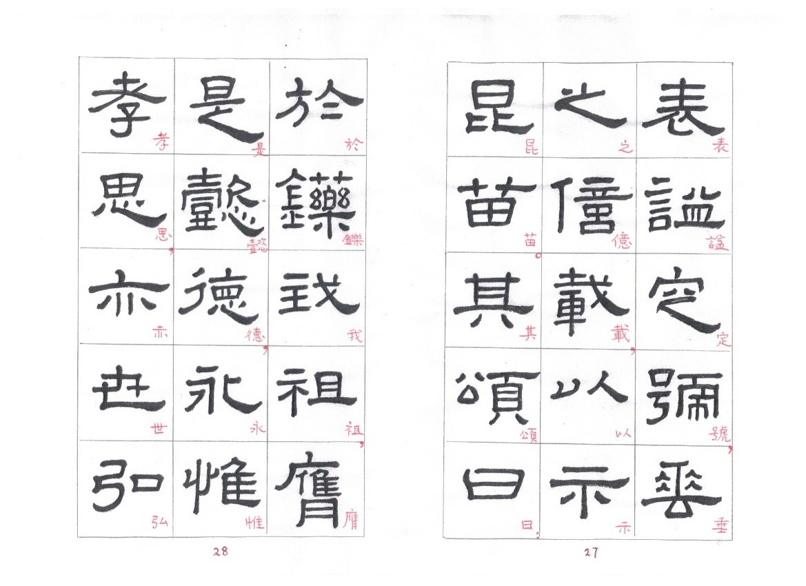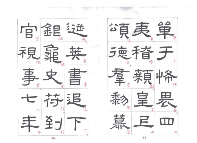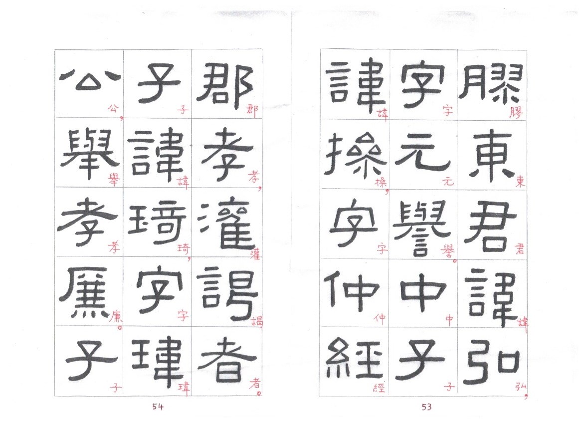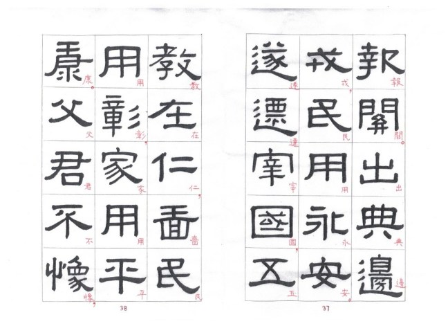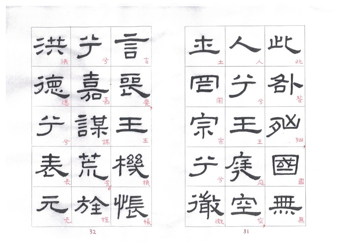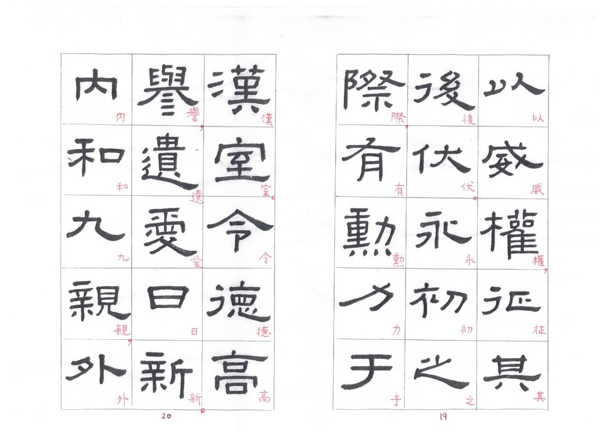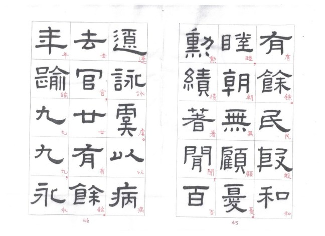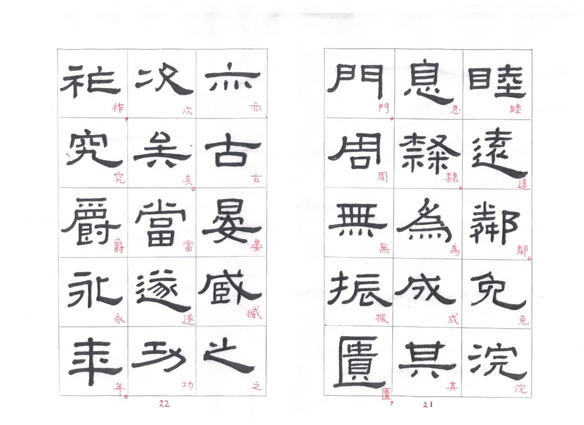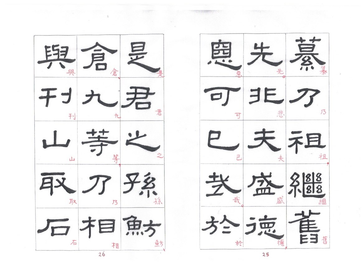 Some of the characters appear in the stele more than once. The following characters are good examples of those characters. Out of the variations of each character, the first one seems to be more typical.