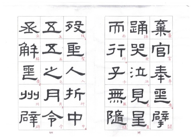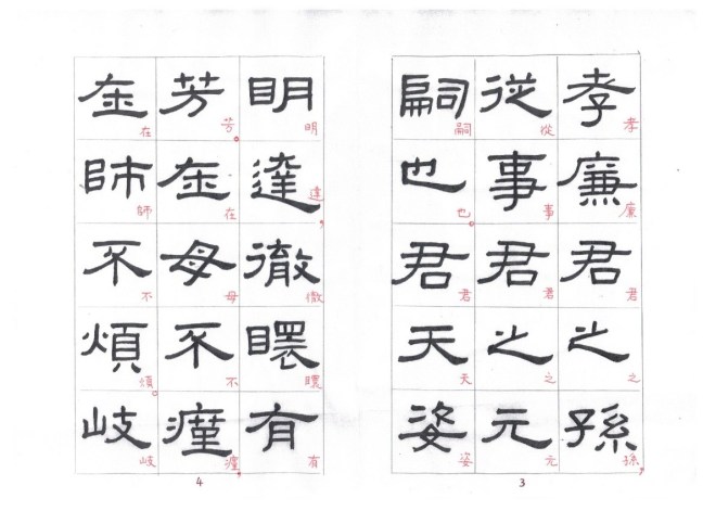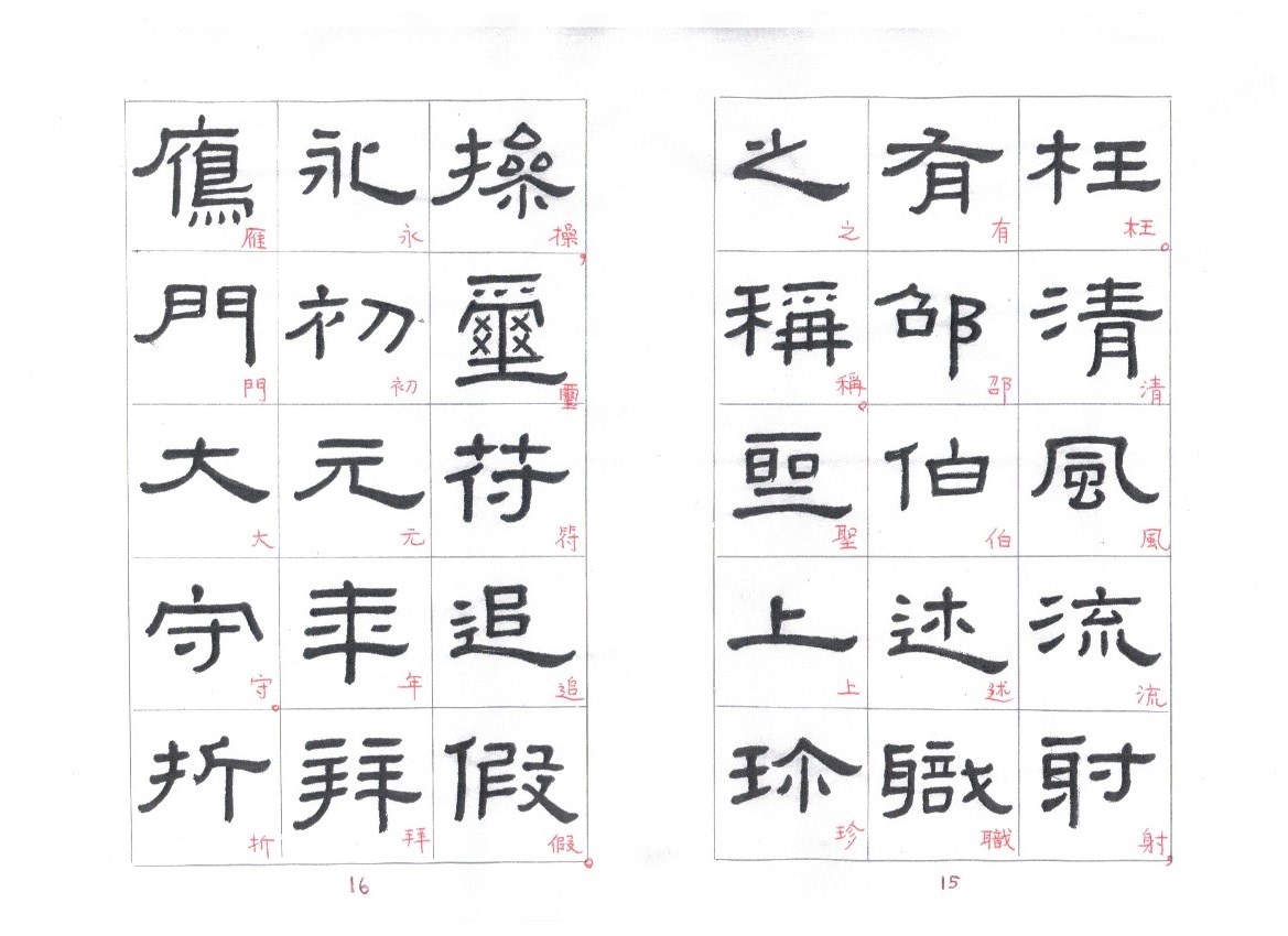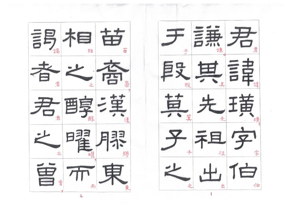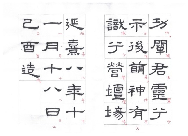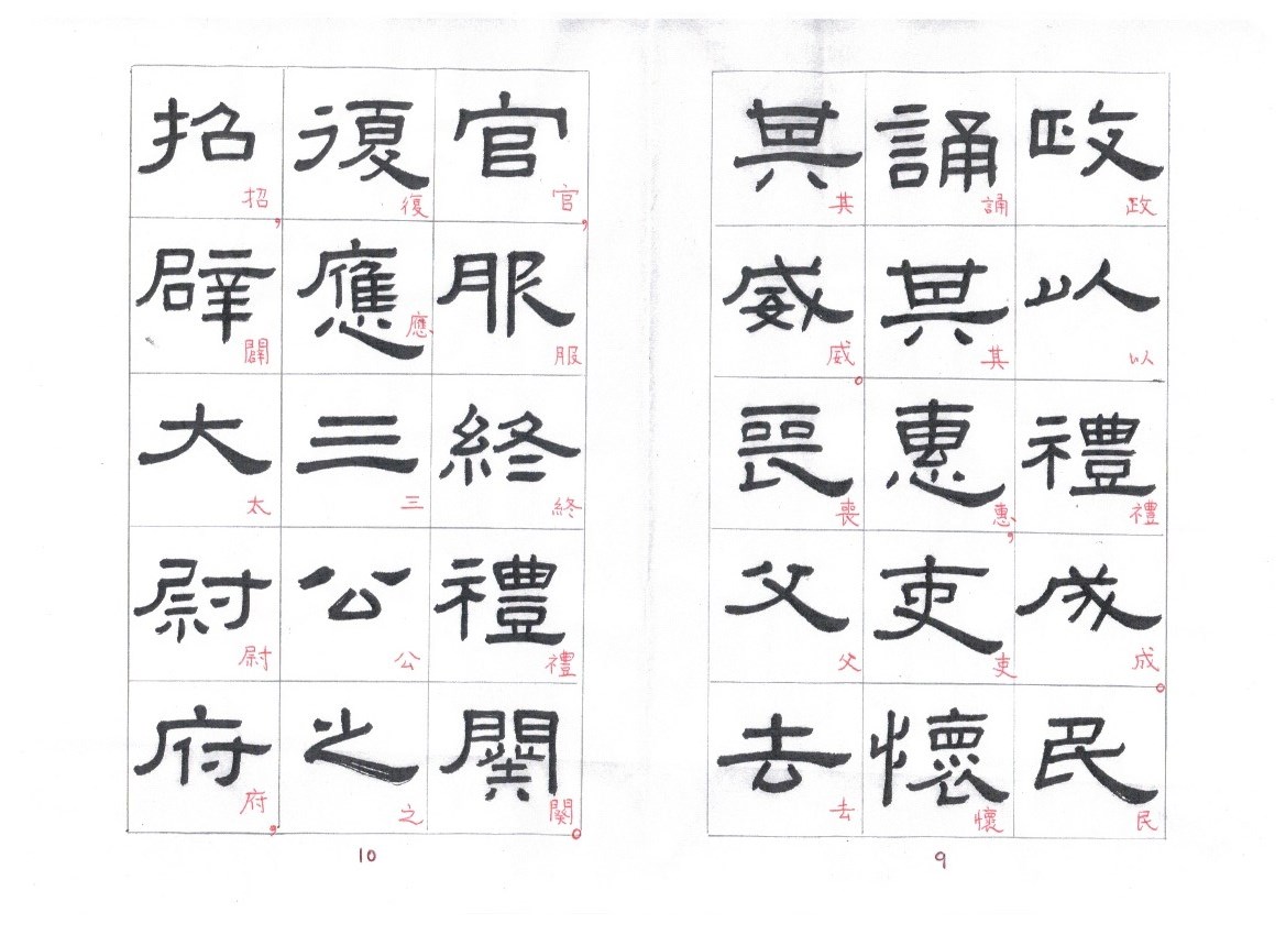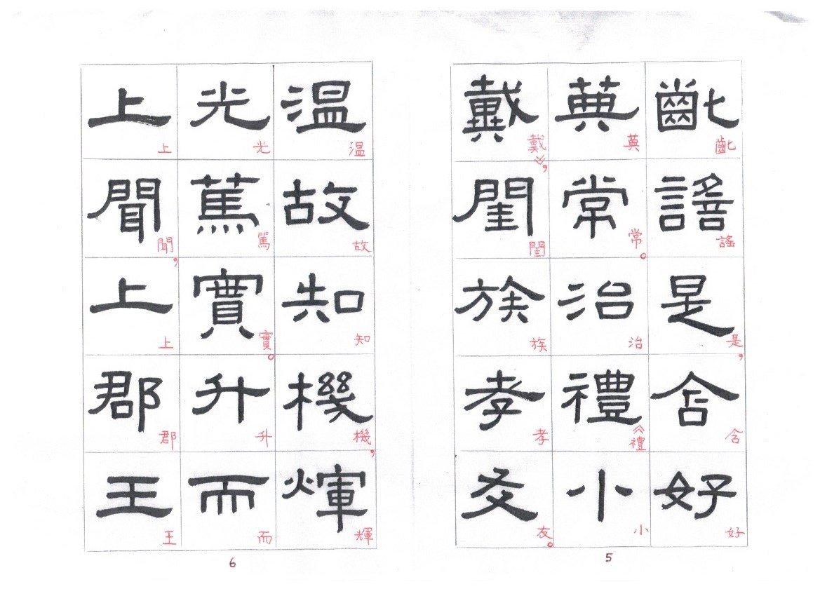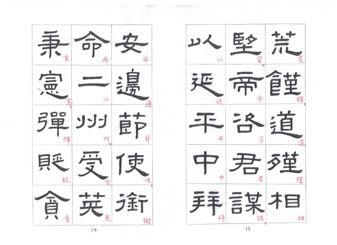 Some of the characters appear in the stele more than once. The following characters are good examples of those characters. Out of the variations of each character, the first one seems to be more typical.