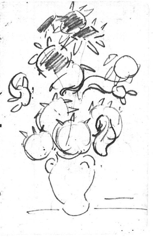 In Dutch literature the sunflower was a symbol of devotion and loyalty. In their various stages of decay, these flowers also remind us of the cycle of life and death. For Van Gogh, yellow was an emblem of happiness. In 1888 and 1899 he was in Arles, the South of France waiting for the arrival of his hero, the avant-garde artist Gauguin. Van Gogh painted at least seven versions of sunflowers in a vase. His sketchbooks also contain sketches of sunflowers. The ‘Sunflowers’ was a gesture of friendship and to impress Gauguin.