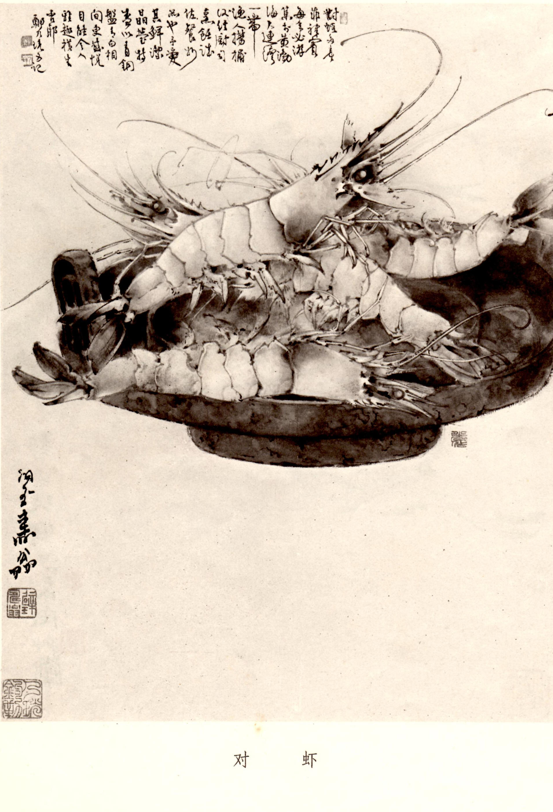 Modern artists like Ren Bonian (任百年) and Qi Baishi (齊白石) did paintings with cooked crab and a jar of wine. Zhèng Nǎiguàng (鄭乃珖) did paintings of raw seafood on plates.