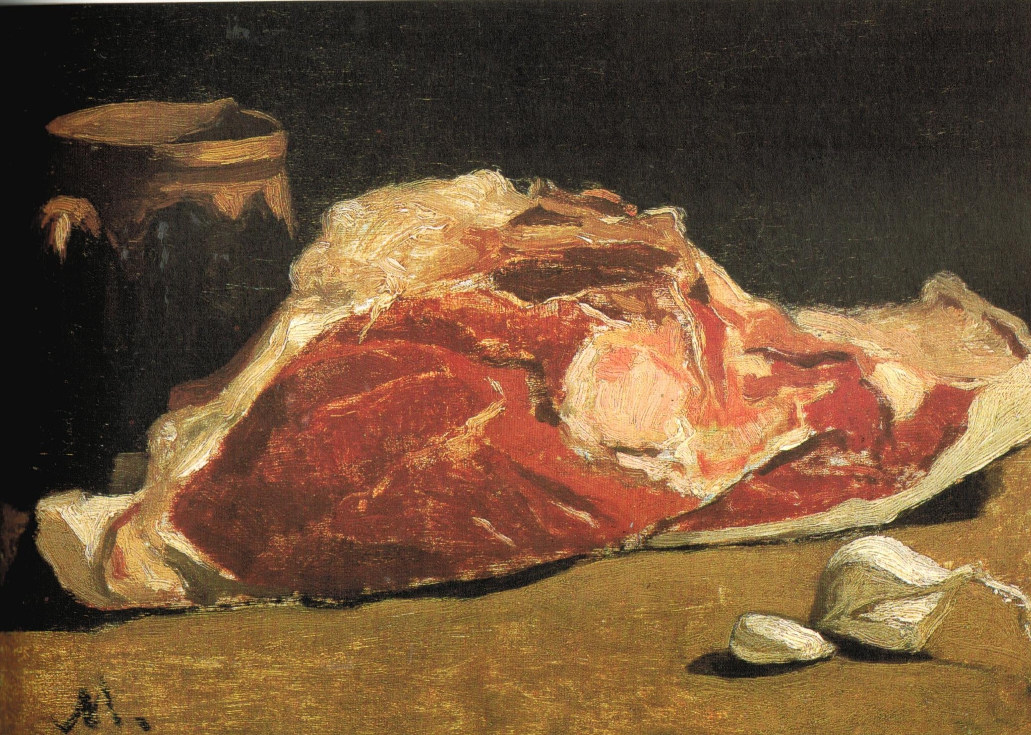 Artists like Rembrandt, Goya, Monet, Manet and Édouard-Émery Richard did some interesting paintings on meat. Rembrandt even painted a whole carcass of beef which some people may find scary. There are all oil paintings showing the fine textures in a highly skillful way.