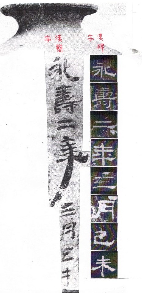 The urn was dated as the third month of second year of Yong Shou) (永壽二年) (156 CE) which is the the same year as dated in Li Qi Bei. We can compare the clerical scripts of the two artefacts written in the same year.