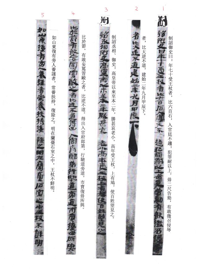 Wang zhang shi jian (王杖十簡) , the ten wooden slips of the Emperor sceptor