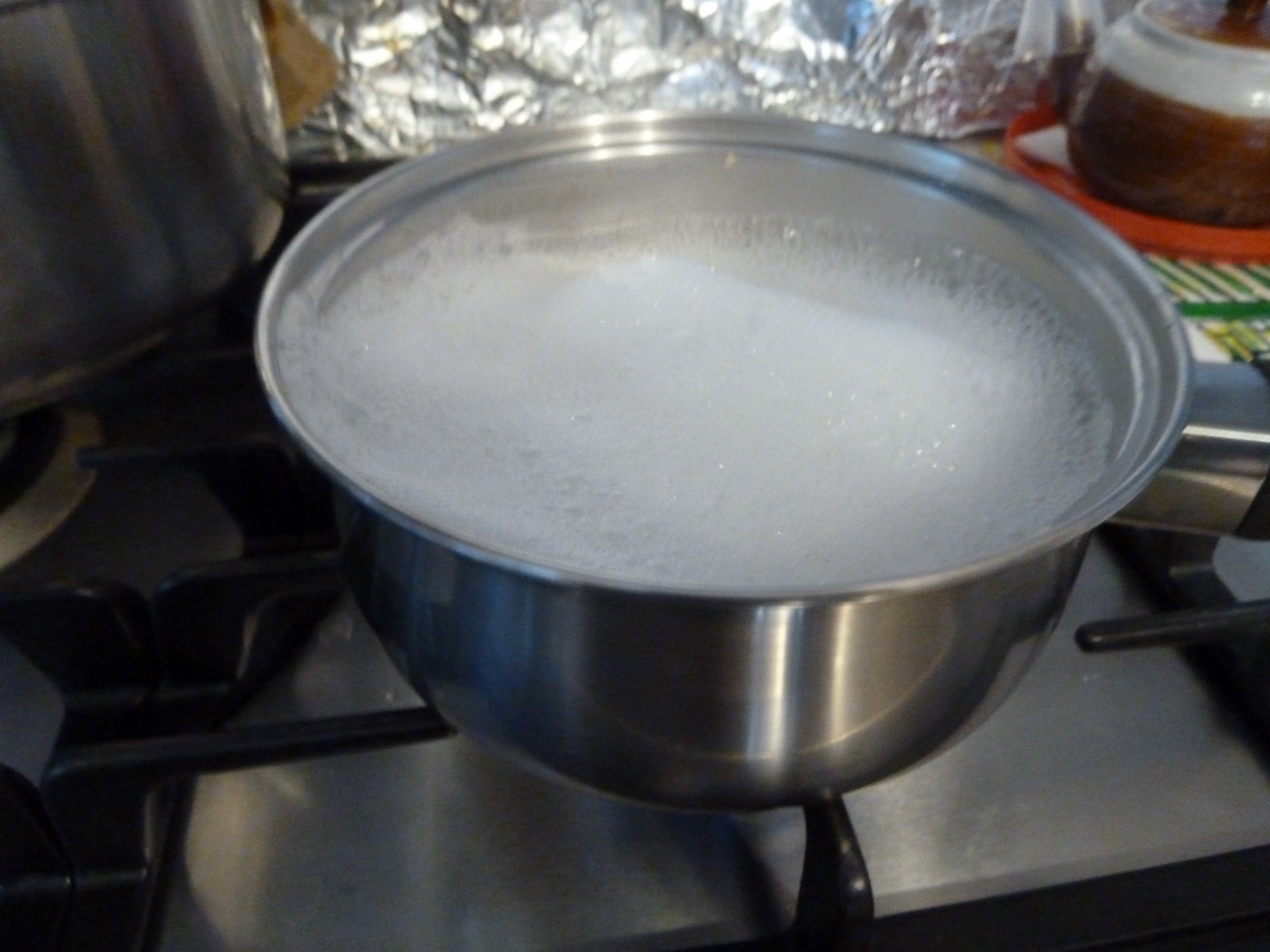 Preparation of the starch paste using a saucepan on a stove