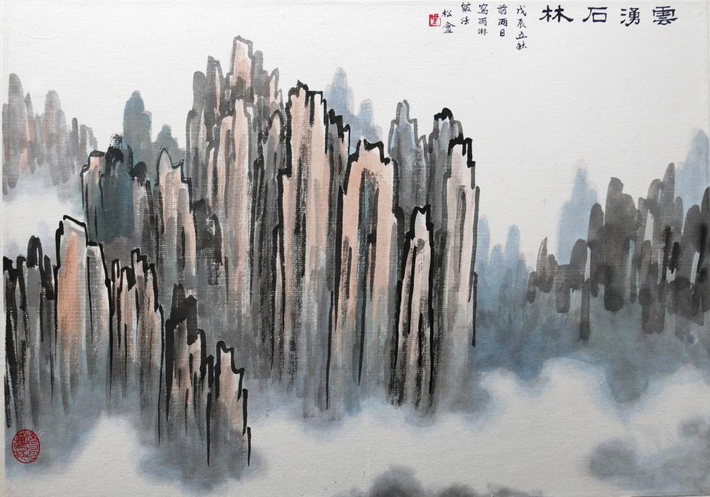 - Jumbled Firewood Ts’un 亂柴皴 – short strokes entangled together. This type of Ts’un goes well with the scene in a windy and stormy weather.