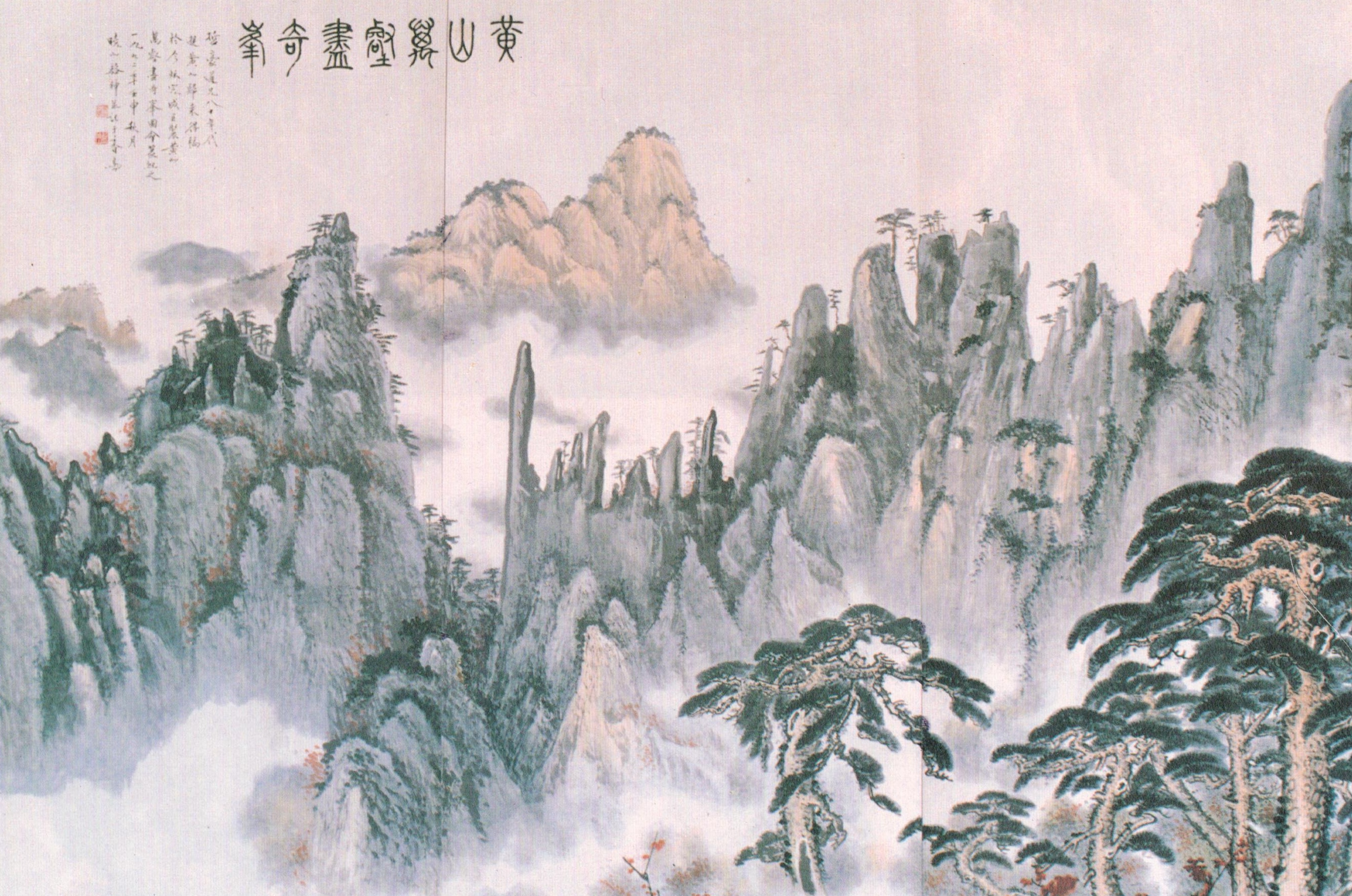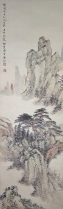 Huang Chunpi (黄君璧) (1898-1991) was a native of Nanhai, Guangdong (廣東南海). Professor Huang excelled in painting landscapes, particularly clouds, streams and waterfalls. He taught at Guangzhou Municipal College of Art (廣州市立美術學校), National Central University (國立中央大學), Taiwan Normal University (臺灣師範大學) and his own Baiyun Studio (白雲堂). He has educated many artists and made great contributions to Chinese fine art.