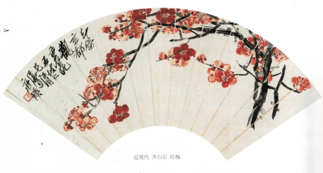 Qi Baishi (齊白石) (1864 – 1957), Red Plum, ink and watercolour on paper fan