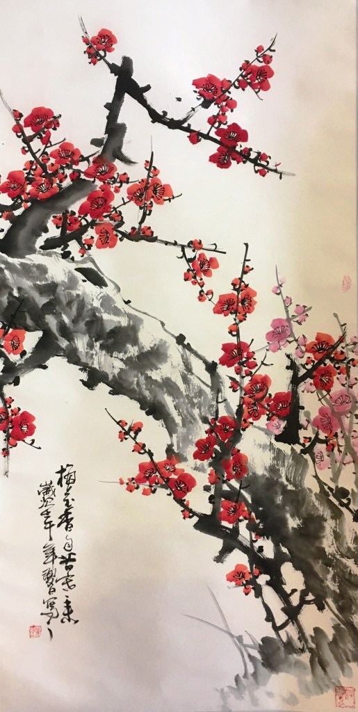 Plum Blossom (Prunus mume) 梅花, a flower which produces shades of pink and white and gives off a delicate fragrance, adopted as the national flower of the Republic of China (中華民國). The flower has great symbolic value for the Chinese people because of its resilience in harsh winter weather.