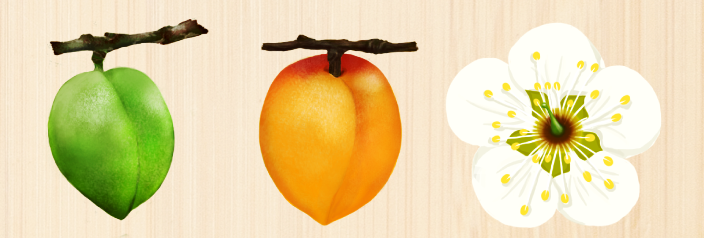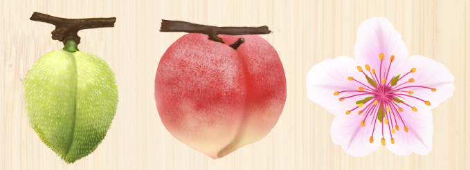 The flowers and the fruits of plum 梅, peach 桃 and cherry 樱花 look very similar.
