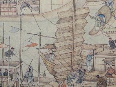 Prosperous Suzhou combines Western linear perspective with traditional Chinese landscape trees and rocks painting methods. The scroll is invaluable from both a historical and an artistic point of view, depicting in sophisticated details the most prosperous city in China in mid-18th century. This enables modern viewers to have a good idea of how Suzhou looks like some 270 years ago before the invention of photography.
