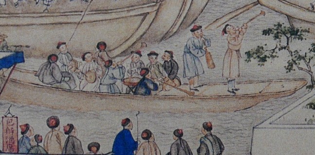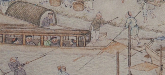 The Qianlong Emperor (乾隆皇帝) (1711-1799) (reigned from 1735- 1796) commissioned Xu Yang (徐揚) to draw Prosperous Suzhou (姑蘇繁華圖) after he returned from an inspection trip to the Suzhou and other southern parts of the country in 1751. Xu Yang was a court painter and a native of Suzhou. It took about 10 years for Xu Yang to complete this long scroll in 1759 (乾隆二十四年).
