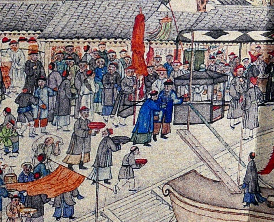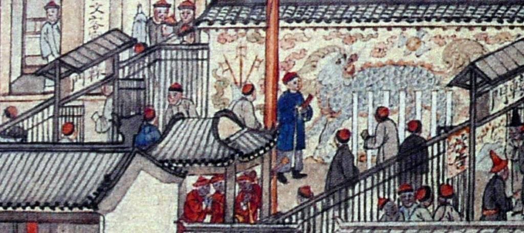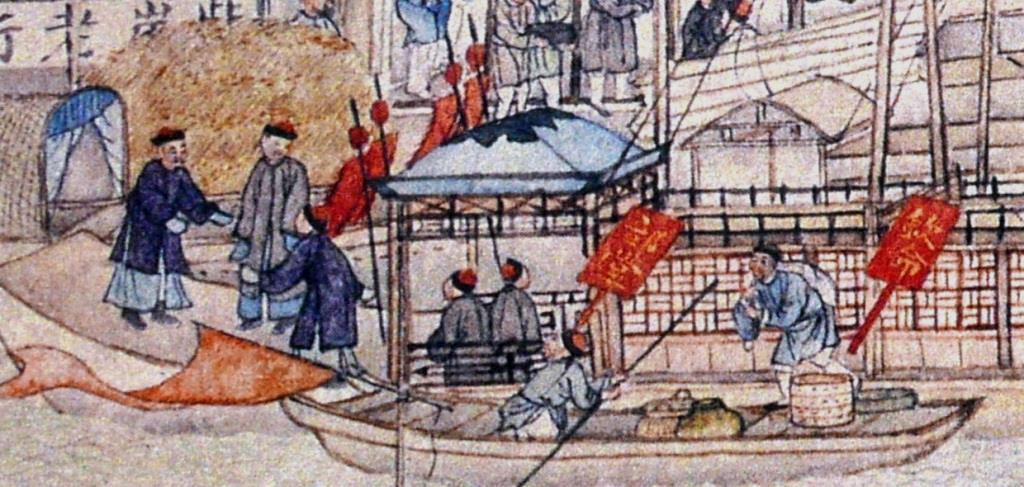 An imperial inspector debarking from his boat is warmly welcomed by local officials. The wooden badges on the boat ‘On Imperial Order (欽命)’, and ‘Governor (部堂)’ indicate the high rank of the Imperial inspector.