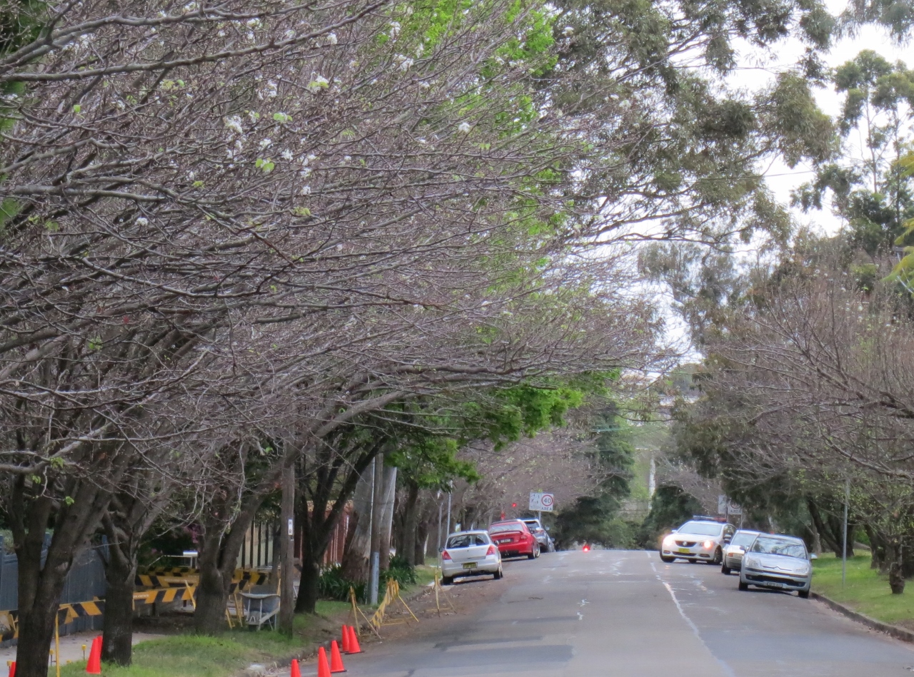 All the leaves of the last season has fallen off and some new ones start to grow. The photo was taken in Chatswood, Sydney on 16 September 2016 (early spring time).White flowers are in full bloom with young leaves emerging. The photo was taken in Chatswood, Sydney on 22 September 2016 (early spring time).
