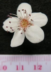The white, five-petaled flowers are about 2 to 2.5 cm in diameter. They are produced abundantly in early spring, before the leaves expand fully.