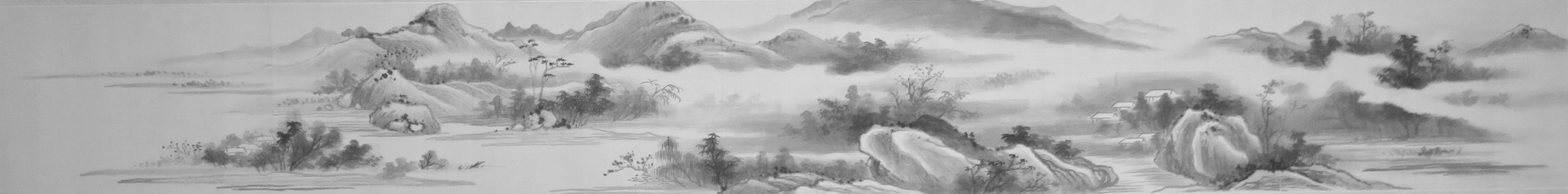 燿漢仁弟於去歲冬得陳汀蘭仿董玄宰雲山烟雨圖長卷,筆精妙墨,澹遠蕭䟽,蘊墨禪之遺韻,有不食人間烟火者。抗戰時汀蘭先生與研山翁相聚於粵之南路,戰後播遷香港,復與研翁共處海隅,常相敘晤,亦師亦友,其藝契之深,殊可概見。三十年前先生緣於家庭拂意事,隻身以去,此後飄然黄鶴,不知所踪矣,吁其蹇遇之可痛也!先生生於戊午,惜在港未獲一面之雅,爰就所知畧識其梗概,並率賦截句二章如右。