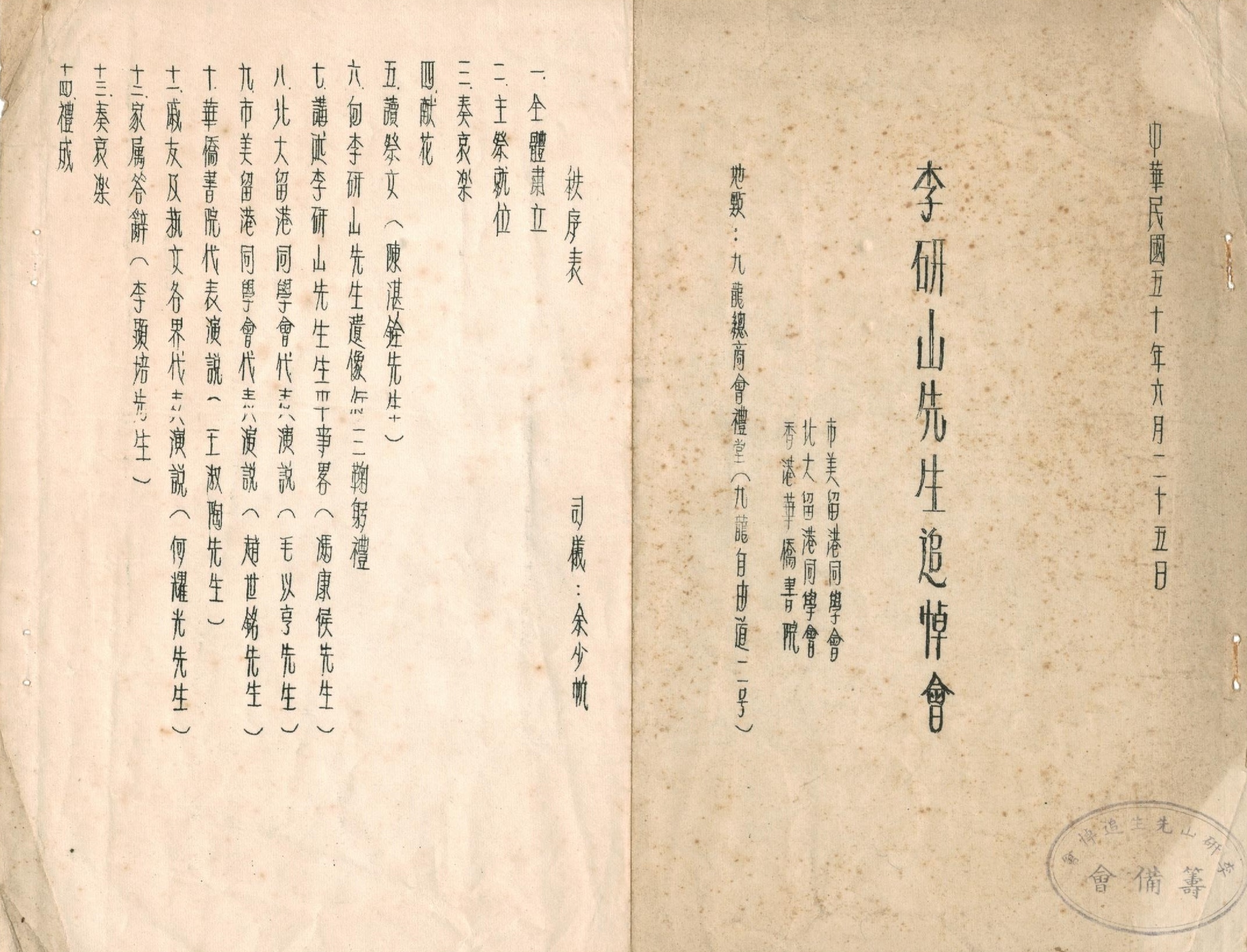 The Proceedings of the Memorial Service of Li Yanshan were as follows: